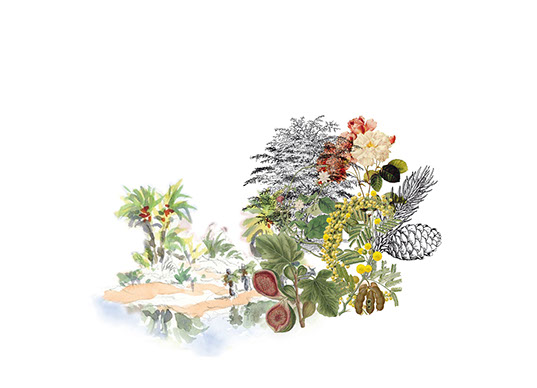 Durch das massive Atlasgebirge einerseits und die mediterranen Einflüsse andererseits ist das Klima jener Region extrem, was auch in einer sehr vielfältigen Flora resultiert. An Orten mit regelmässigem Zugang zu Wasser zeigt sich diese in ihrer überwältigenden Pracht. Neben der fruchtigen Süsse von reifen Datteln und Feigen sind diese Pflanzenoasen von den Aromen des fruchtig-krautigen Jasmins, der honig-teeartigen Rosen und der orientalisch-verführerischen Akazienblüten charakterisiert, die dort blühen. Gleichzeitig gedeiht in jener Gegend auch die Atlaszeder, die für ihr holzig-balsamisches Aroma berühmt ist.